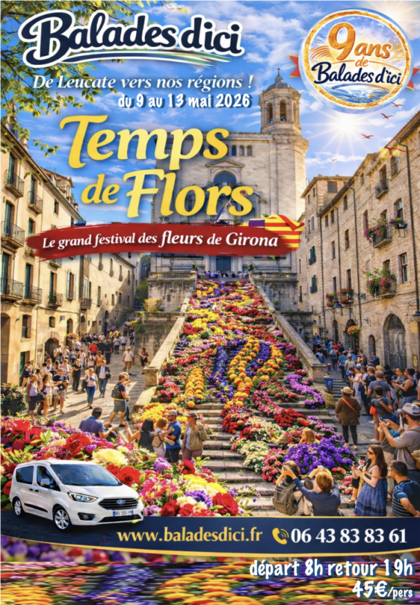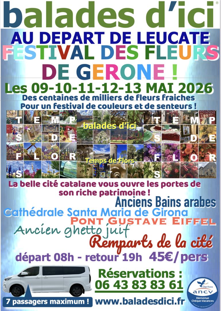 Balades d’ici vous propose une flânerie unique et mémorable au coeur du grand festival des Fleurs de Girona ! l'une de nos balades coup de coeur, la capitale de la province de Gérone s’offre à vous, en mode " portes ouvertes " pour accueillir chaque saison un festival coloré, parfumé, fleurs fraiches dans toute la ville, rues, vitrines, monuments, musées ..