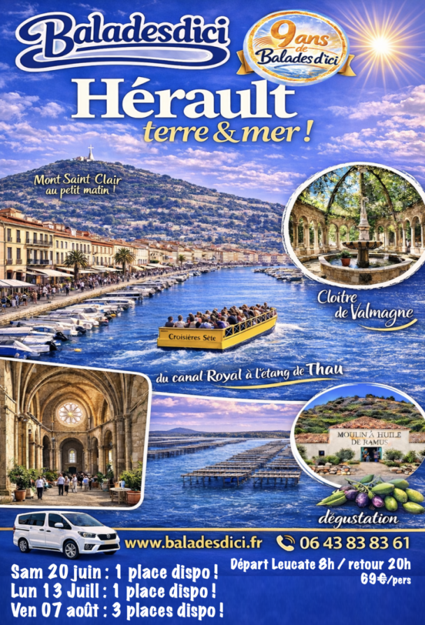 Cette balade est une nouveauté 2024 ! et vient enrichir ce catalogue de flâneries dans nos régions, à la journée et tout petit groupe de 7 baladeurs maxi, en van tout confort, au départ de chez vous à Leucate, à suivre, avec vous !!